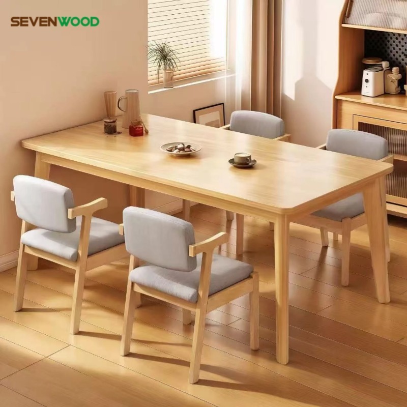 SEVENWOOD เก้าอี้ไม้แท้ เก้าอี้ทานอาหารสไตล์นอร์ดิก สีไม้ธรรมชาติ มีที่วางแขนและพนักพิง เก้าอี้สำนักงานศึกษา ติดตั้งง่าย