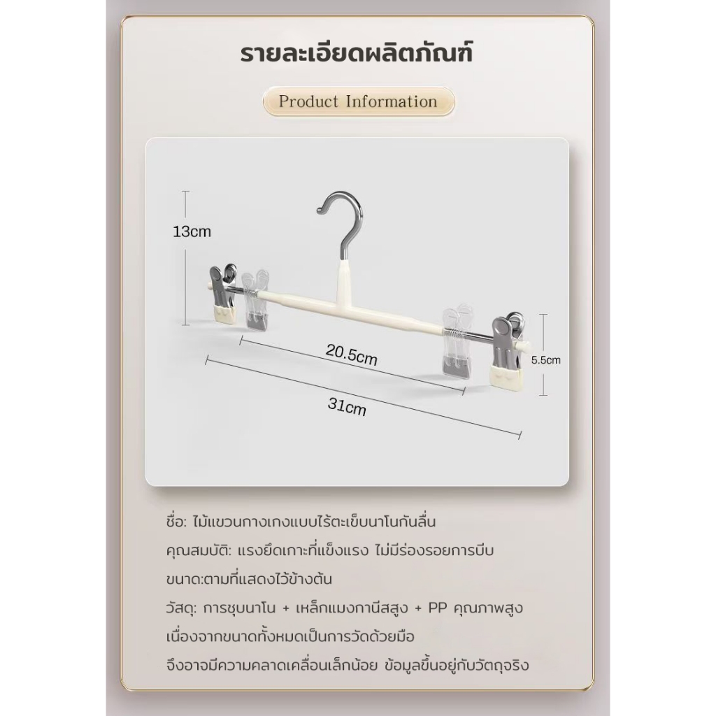 ไม้หนีบกระโปรง ไม้แขวนเสื้อสแตนเลส pant clip 5ชิ้น 10ชิ้น ยาว 25.5ซม