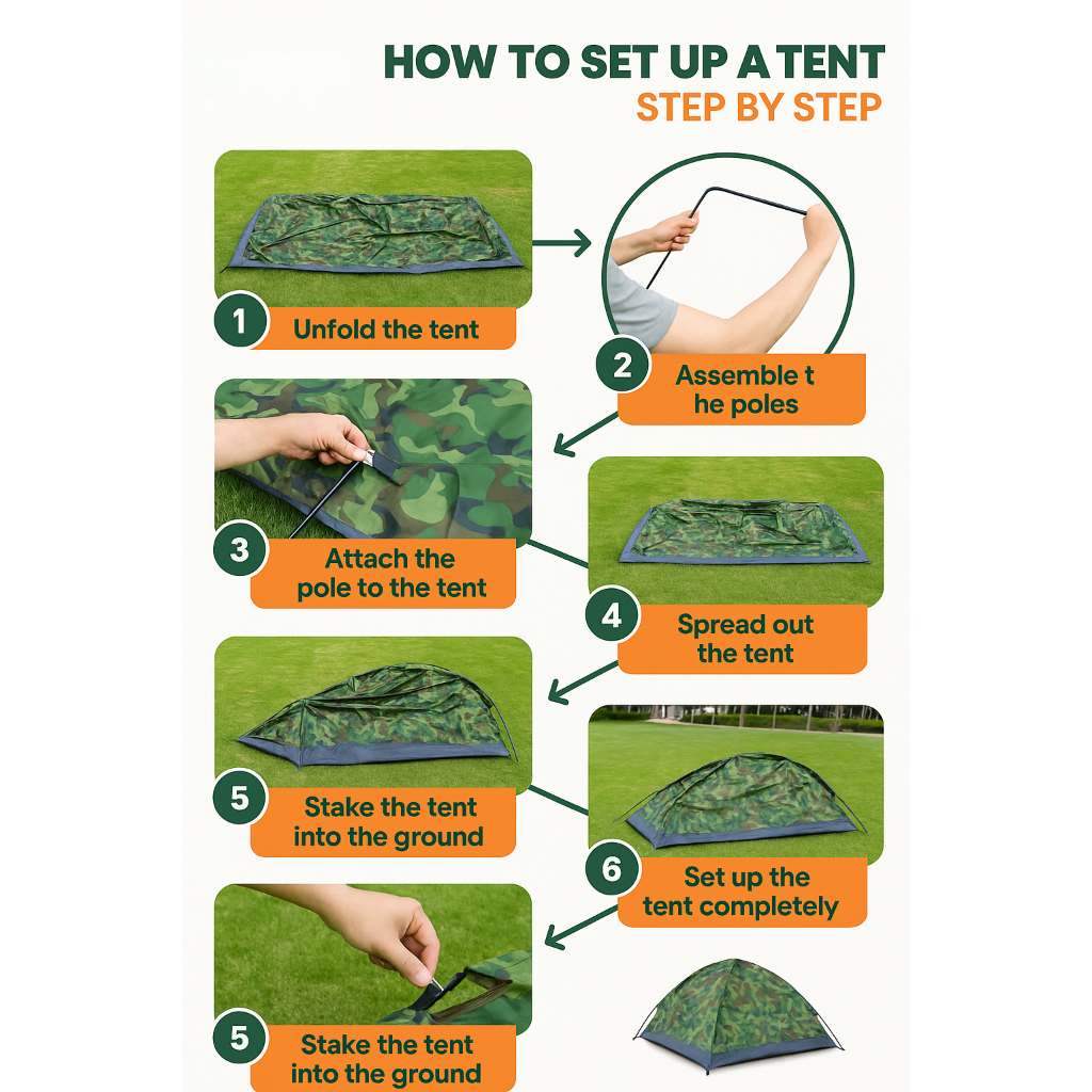 เต็นท์ลายทหาร เต็นท์สนาม เต็นท์นอน 2-3 คน ขนาด 2x1.5 เมตร กันน้ำ พกพาสะดวก