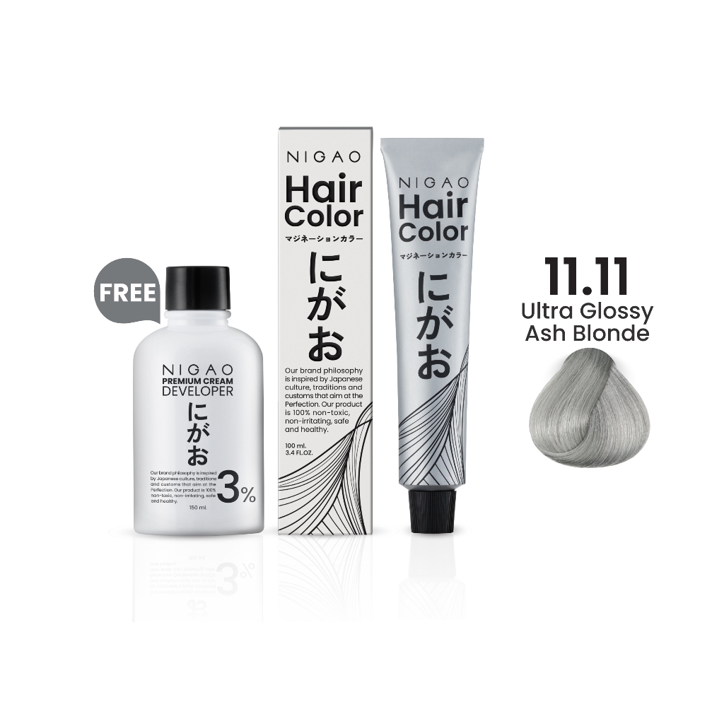 [ฟรี Developer] NIGAO Hair Color Silver Grey 11.11 | นิกาโอะ ครีมเปลี่ยนสีผม สีเทา หม่นสว่างสูงพิเศษ 100 mL