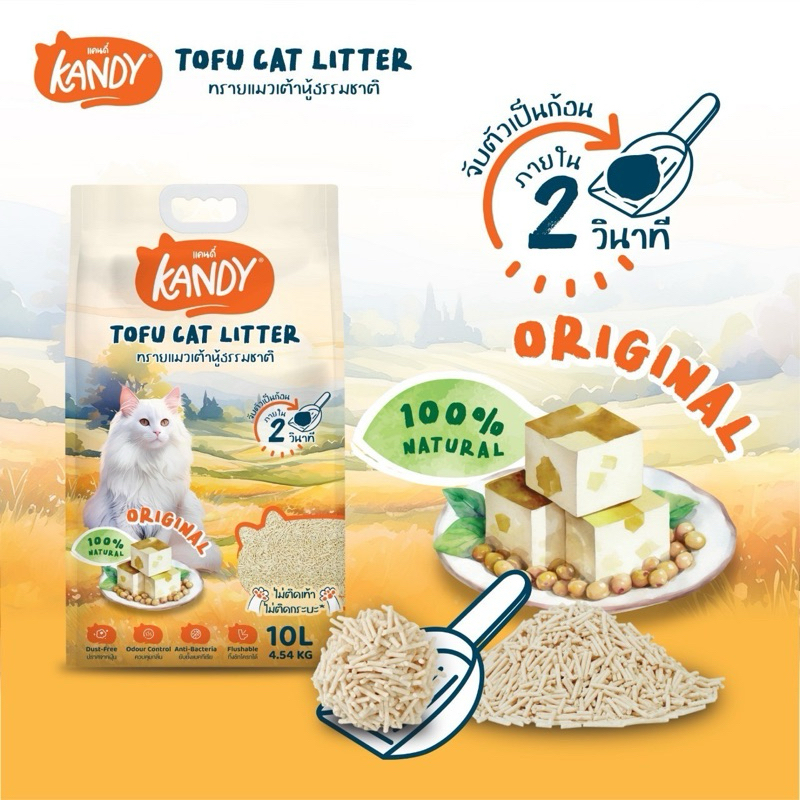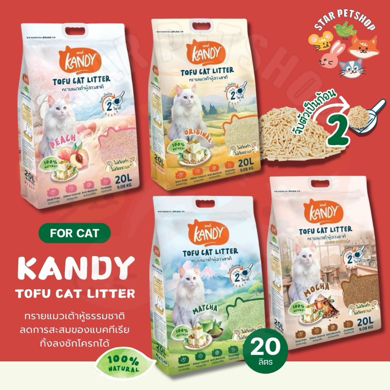 Kandy แคนดี้ ทรายแมวเต้าหู้ ควบคุมกลิ่นดีมาก ไม่มีฝุ่น ไม่ติดเท้า ไม่ติดกระบะ เก็บกลิ่นหอม ขนาด 20 ลิตร
