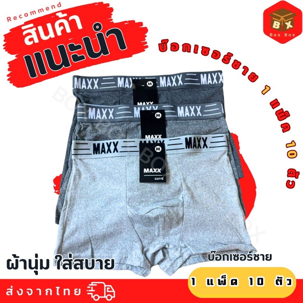 💥พร้อมส่ง🚚กางเกงบ็อกเซอร์ชาย.(Maxx เทา) ผ้าฝ้าย 100% ยืดหยุ่น สวมใส่สบาย ระบายอากาศได้ดี