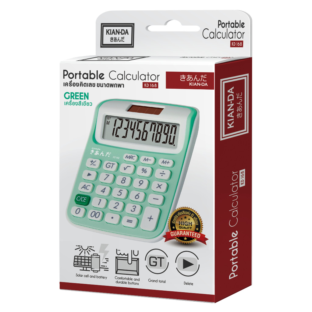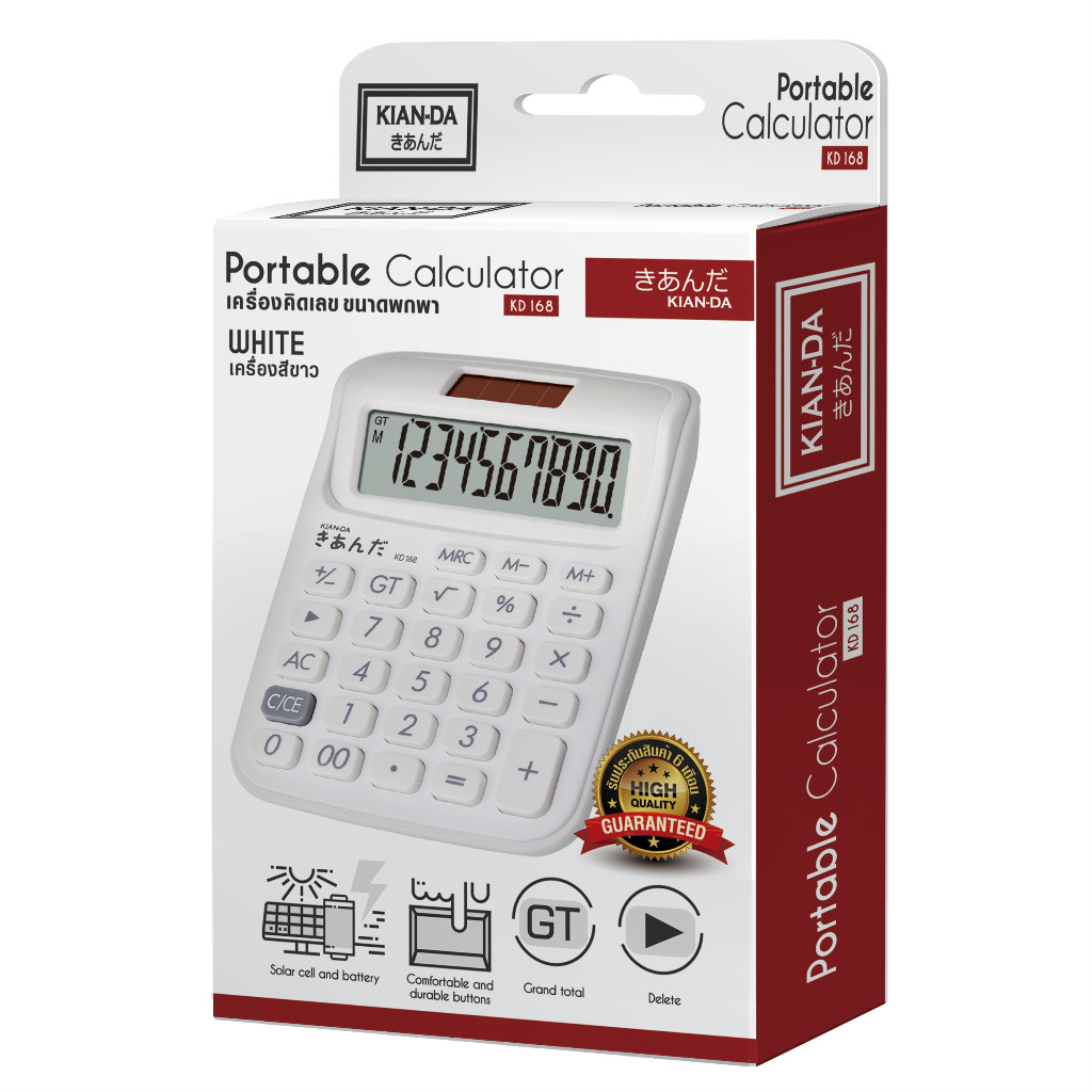 KIAN-DA เครื่องคิดเลข เคียนดาแบบพกพา KD168 (คละสี) ระบบ 2 in 1 ใช้งานได้ทั้ง Battery และ Solar Cell