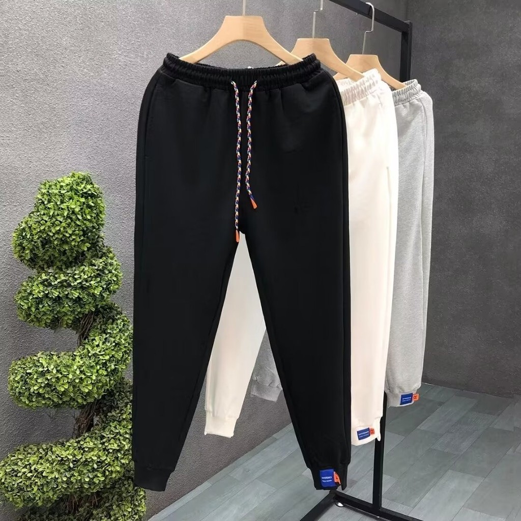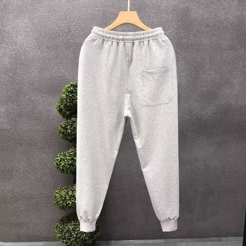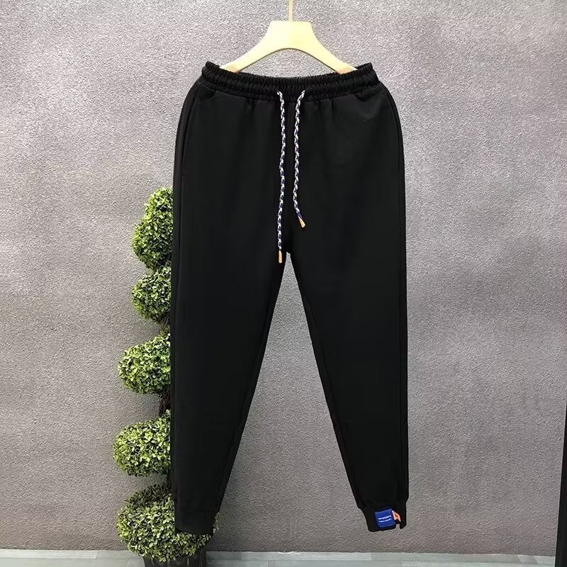 M-5XL กางเกงวอร์มชายสไตล์เกาหลี ทรงหลวมขากว้าง เนื้อผ้าบาง สีพื้น ออกกำลังกาย พลัสไซส์ ดำ/เทา