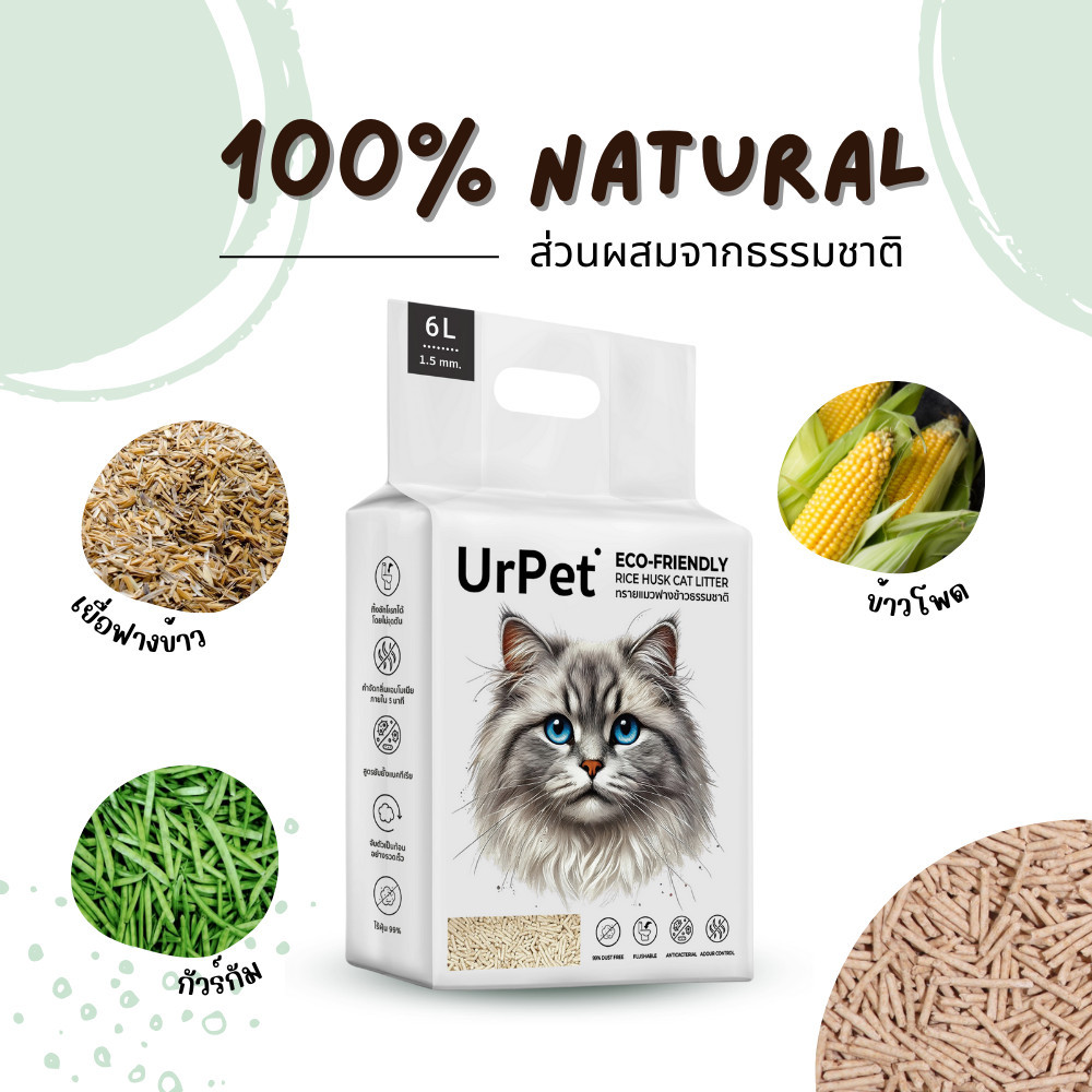 [ยกลัง 36 ลิตร] UrPet ทรายแมวฟางข้าวธรรมชาติ ไร้ฝุ่น ทิ้งชักโครกได้ เกรดพรีเมียม ทรายแมว
