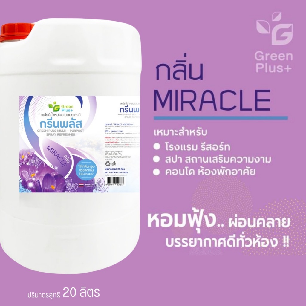สเปรย์หอมอเนกประสงค์ กรีนพลัส กลิ่นมิราเคิล ขนาด ถัง 20 ลิตร