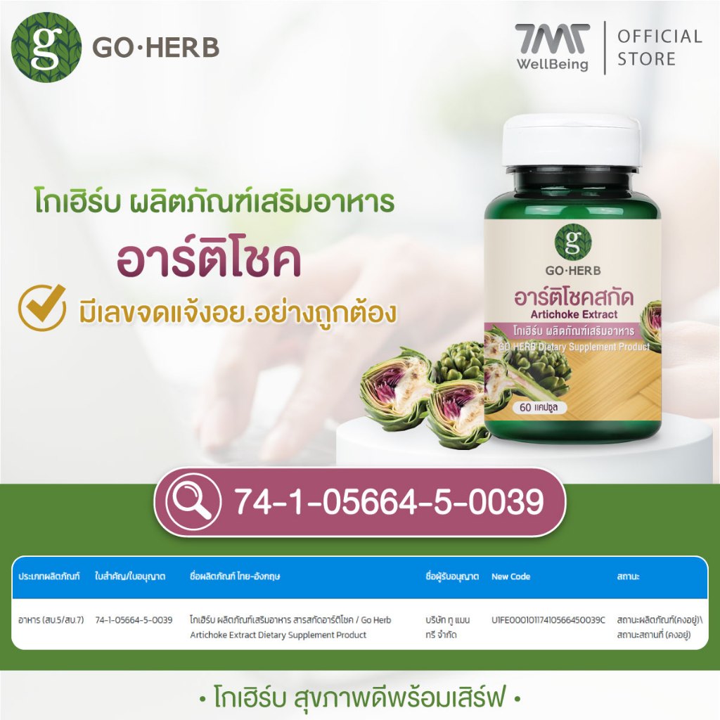 โกเฮิร์บ ผลิตภัณฑ์เสริมอาหาร สารสกัดอาร์ติโชค 60แคปซูล บำรุงตับ ตับแข็ง ลดไขมันพอกตับ