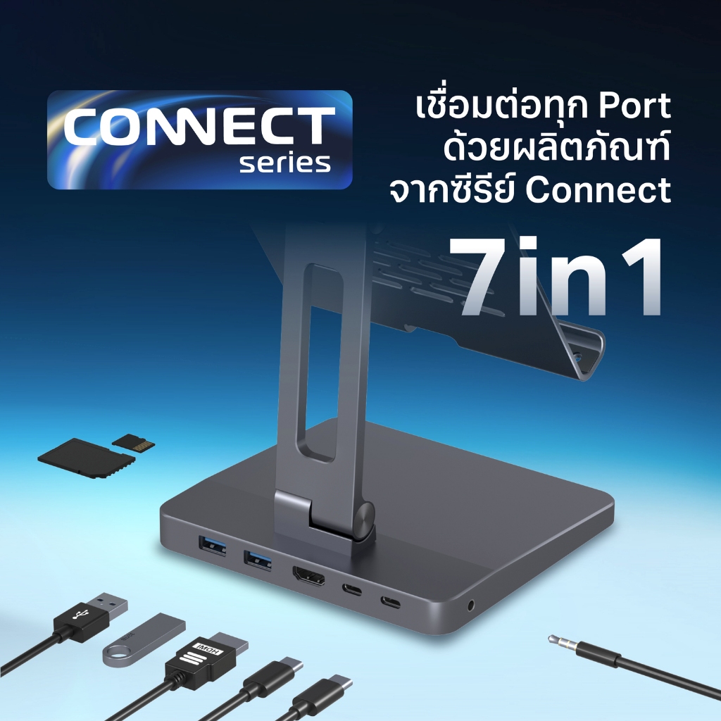 LIV Tablet Stand I Connect : แท่นวางแท็ปเล็ตขนาด 7-17.5" ช่องหูฟัง3.5/USB-C PD100W/USB3.0/HDMI4K 30hz/PortLAN/TF&SDCard