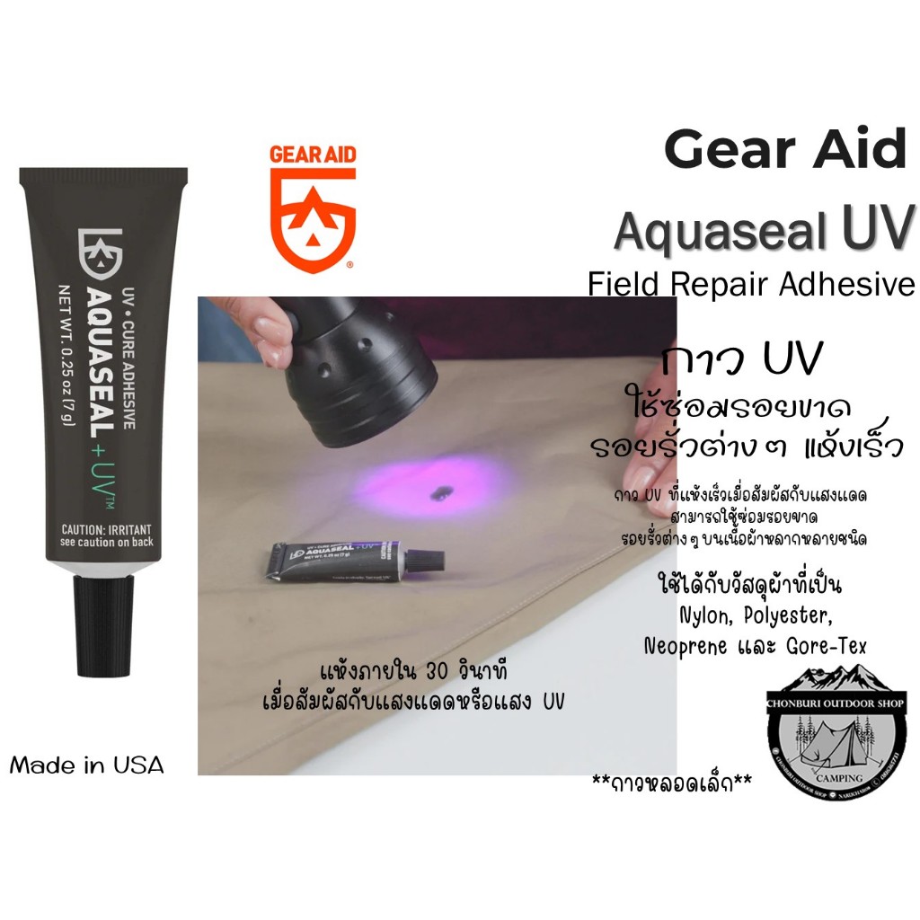 Gear Aid Aquaseal UV Field Repair Adhesive#กาวUV ใช้ซ่อมรอยขาด รอยรั่วต่างๆ แห้งเร็ว