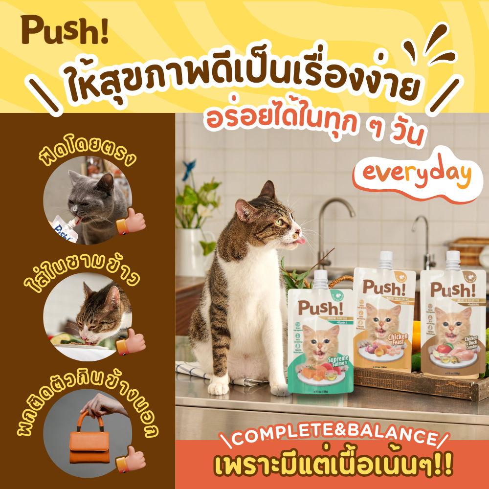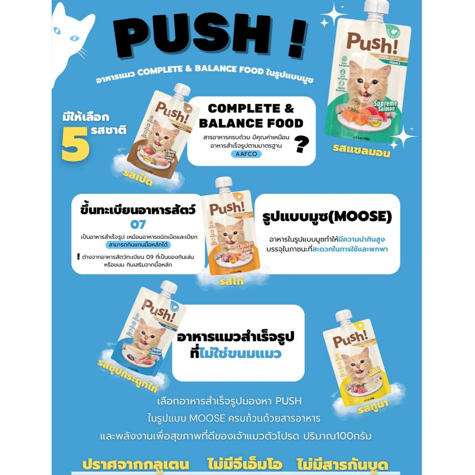 อาหารเปียกแมว Push 100g เนื้อมูส Complete & Balanced กินเป็นมื้อหลัก สารอาหารครบถ้วน