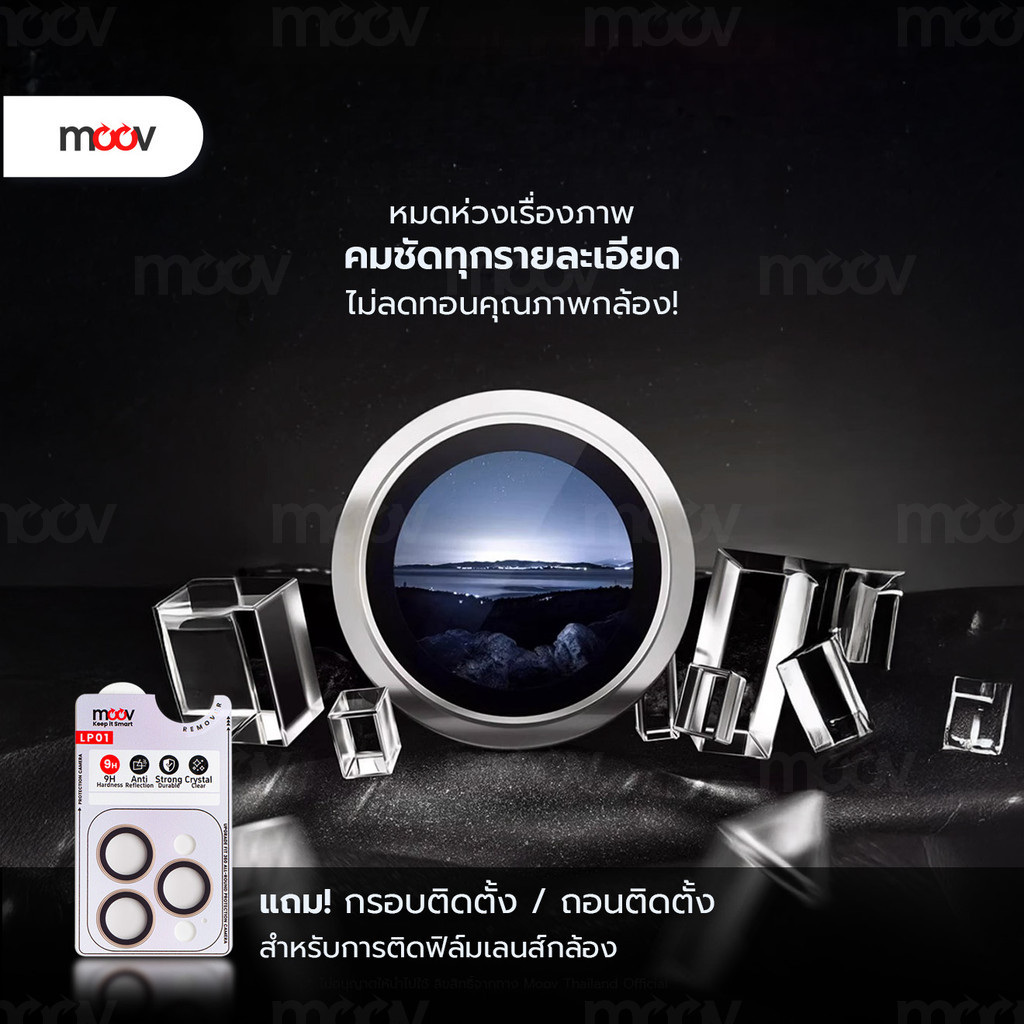 [โค้ดคุ้ม] Moov LP01 ฟิล์มเลนส์กล้อง ไอโฟน For iPhone 17 Pro Max Air 16 Pro 15 Plus 14 13 12 11 ฟิล์มกระจกกล้อง