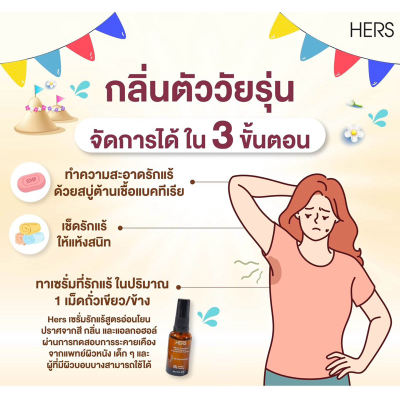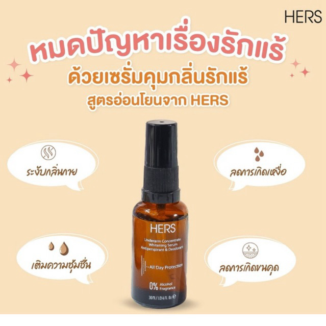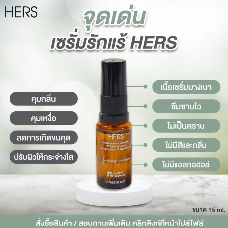 HERS เซรั่มรักแร้ ลดกลิ่นตัว ลดเหงื่อ รักแร้ขาวใส ไม่แสบผิว ไม่มีแอลกอฮอล์ [ของแท้ 100%]