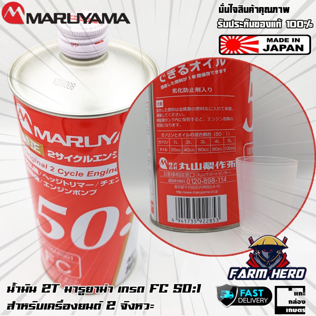 Maruyama น้ำมัน2T น้ำมันออโต้ลูป มารูยาม่า 50:1 กระป๋องละ 1 ลิตร MADE IN JAPAN สำหรับเครื่องยนต์ 2 จังหวะ