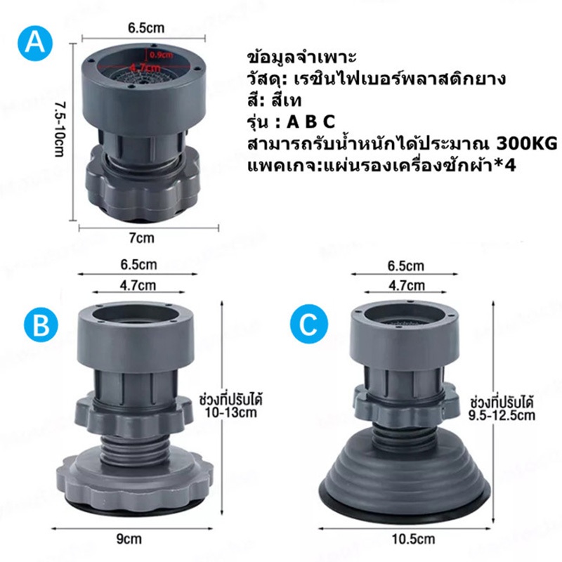 ขารองเครื่องซักผ้า 4ชิ้น ขายาง ฐาน ฐานรองปรับความสูง ขายางกันสั่น กันลื่น กันเสียง ใช้ได้กับเครื่องซักผ้า ตู้เย็น