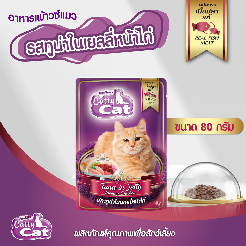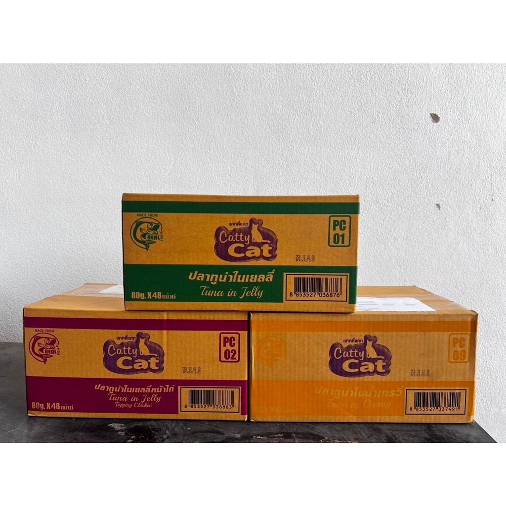 [[ยกลังจำนวน 48 ซอง ]] อาหารเปียก catty cat แคทตี้แคท แบบซอง ทำจากเนื้อปลาแท้ ขนาด 80 กรัม