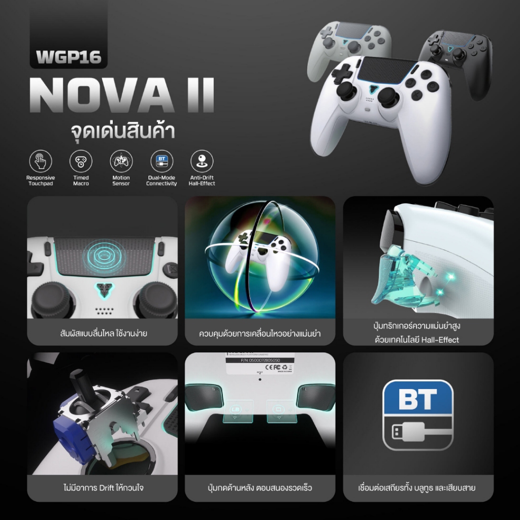 FANTECH จอยเกมมิ่งไร้สาย เชื่อมต่อได้ 2 โหมด Wireless gaming controller รองรับ PC/PS รุ่น WGP16