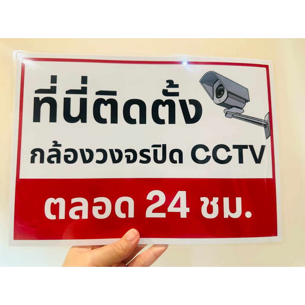 ป้าย ที่นี่ติดตั้งกล้องวงจรปิด ตลอด 24 ชม.| ป้ายไวนิล | ป้ายเคลือบพลาสติก | สติ๊กเกอร์ A4 A5 สีสวย คมชัด ส่งไว