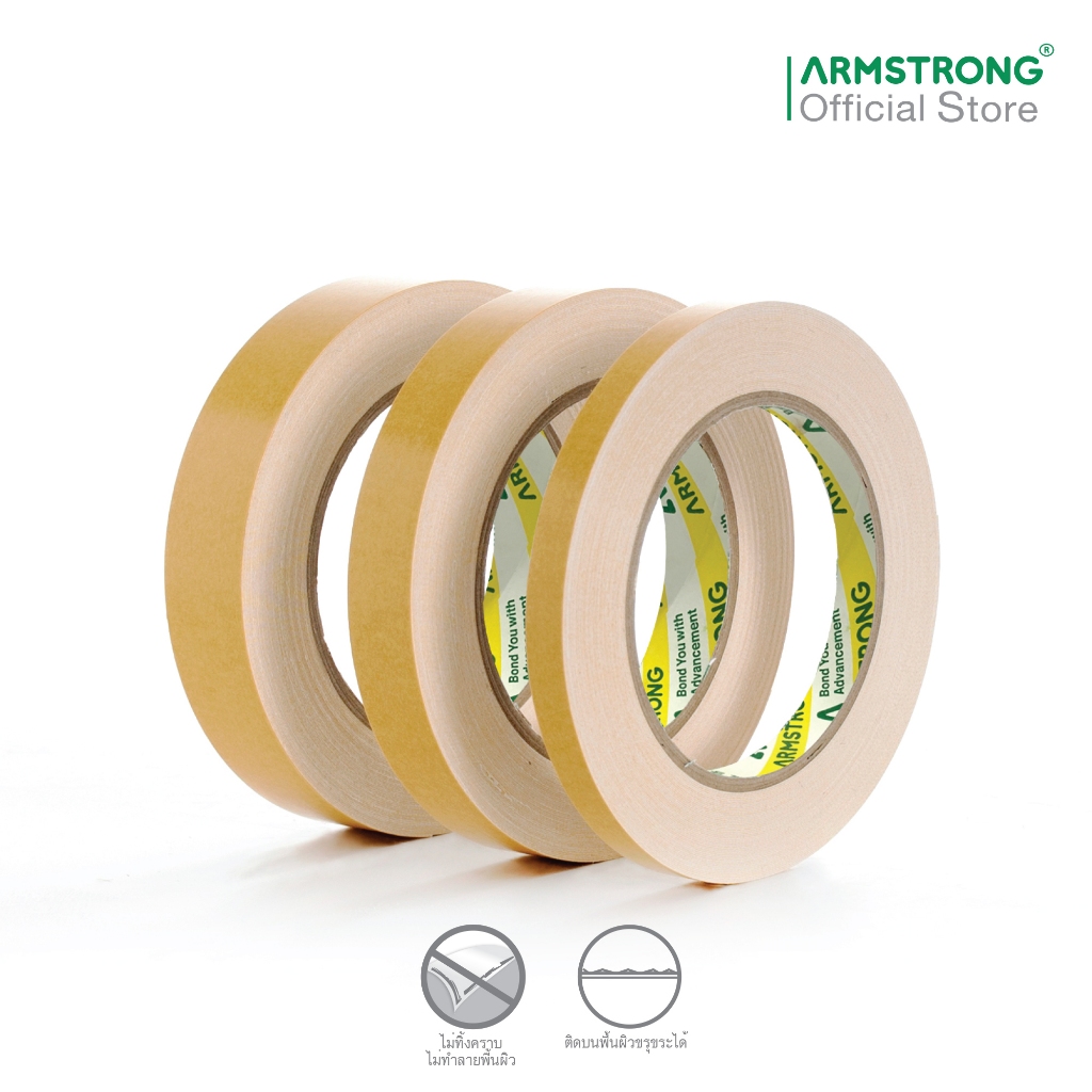 Armstrong เทปติดพรม (ยกโหล12ม้วน) เทปผ้ากาวสองหน้า 12/18/24มม x 15ม / Double Sided Cloth Tape (Carpet Tape)