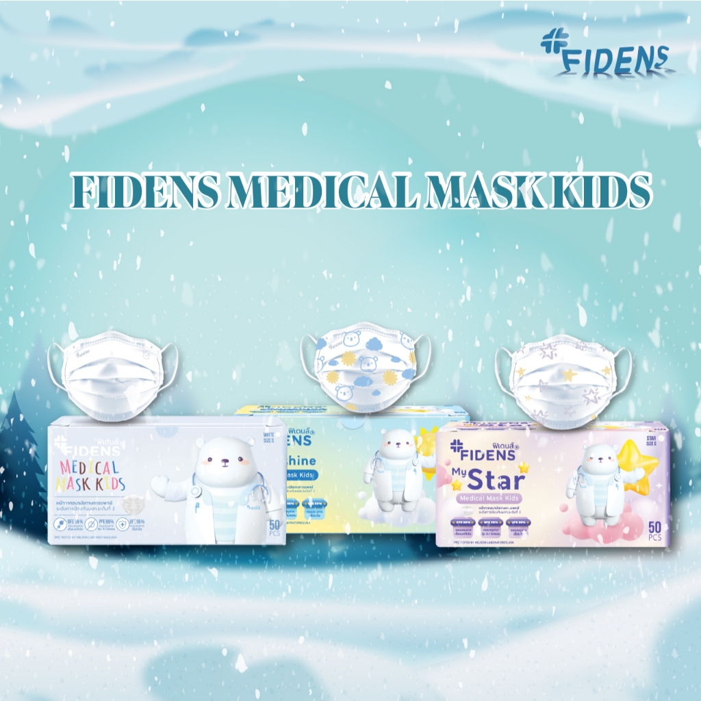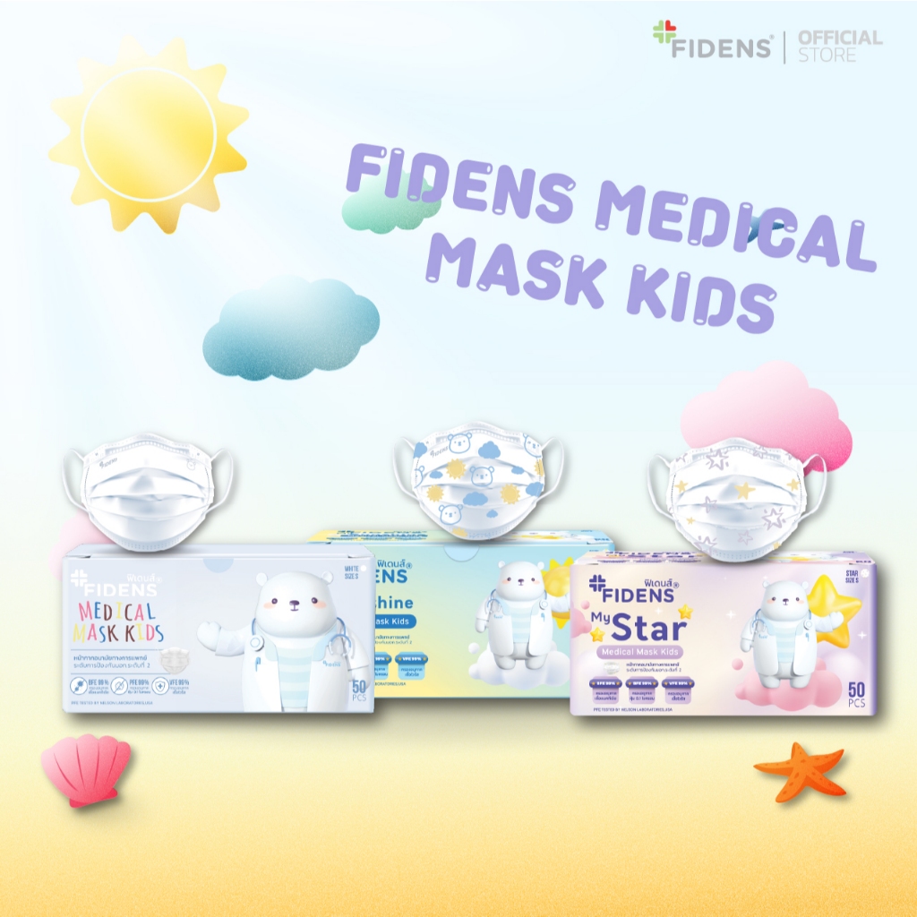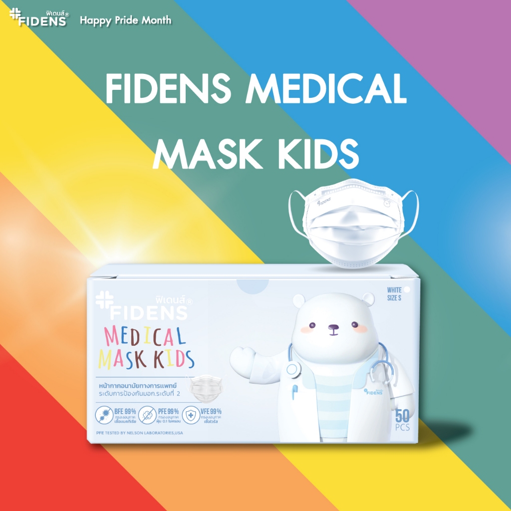 FIDENS MASK KIDS ฟิเดนส์ หน้ากากอนามัยทางการแพทย์สำหรับเด็ก 3 ชั้น รุ่นMASK KIDS 1 กล่อง 50 ชิ้น