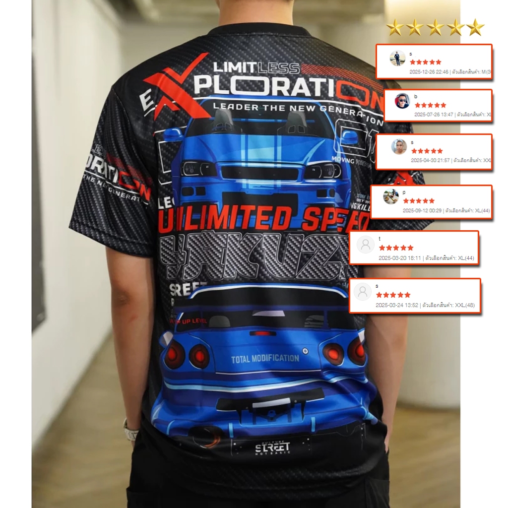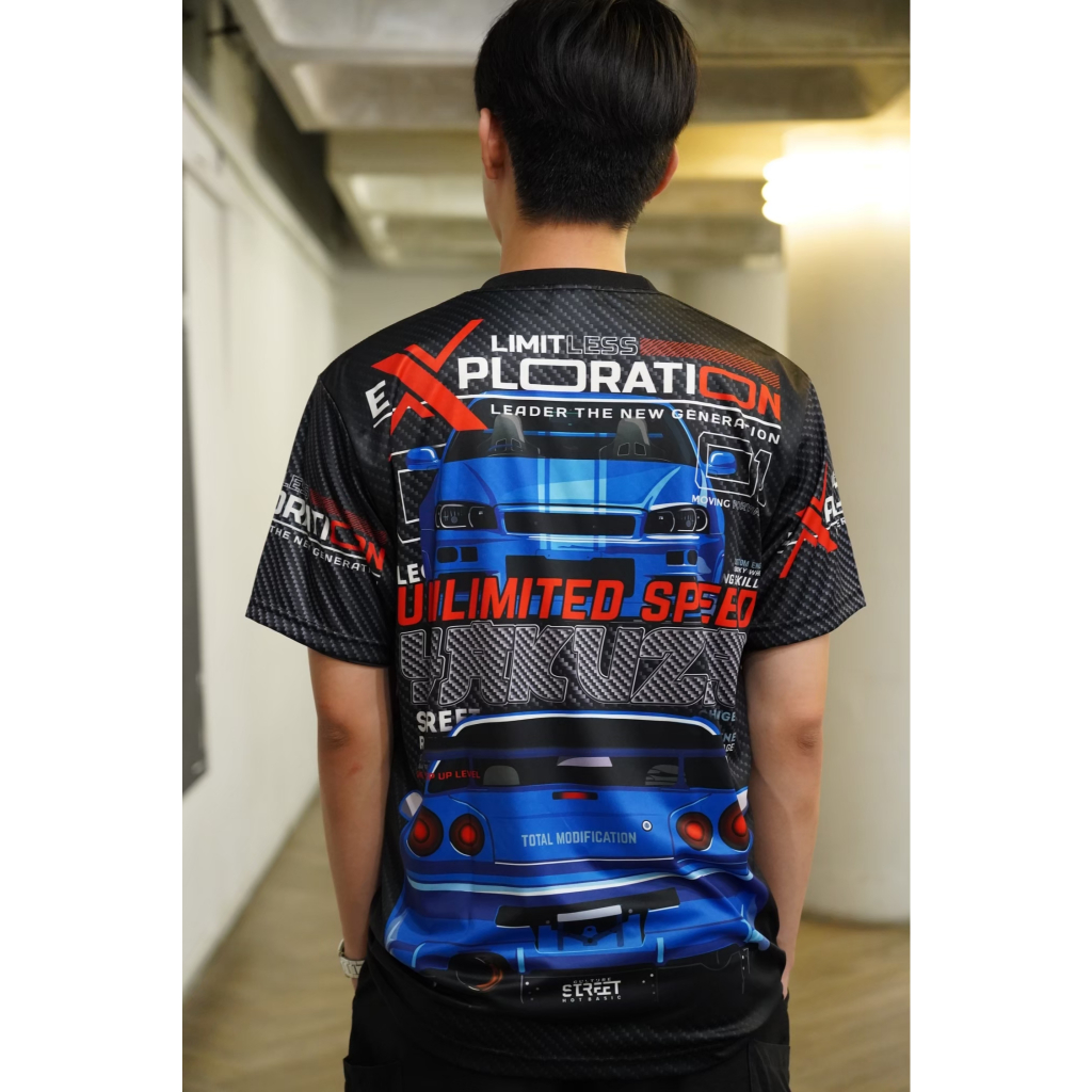 Hot Basic เสื้อยืดรถซิ่ง GTR | ลายรถน้ำเงิน | สตรีท | S259