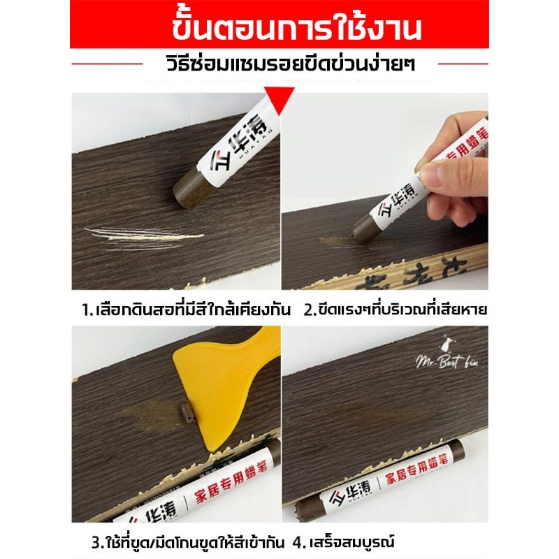 ปากกาขี้ผึ้ง ชอล์กซ่อมงานไม้ ใช้อุดรู ลบรอยขีดข่วนของเฟอร์นิเจอร์หรือเก็บงานพื้นไม้ทุกชนิด