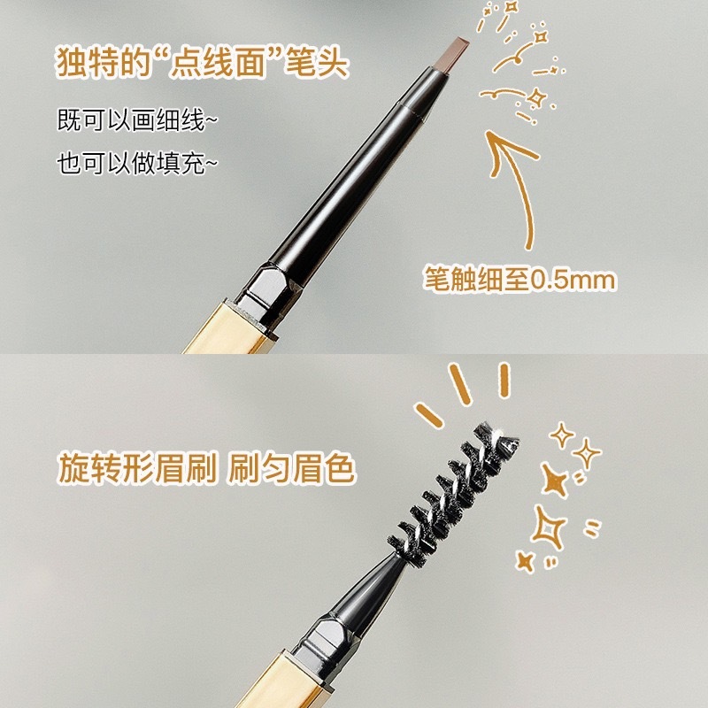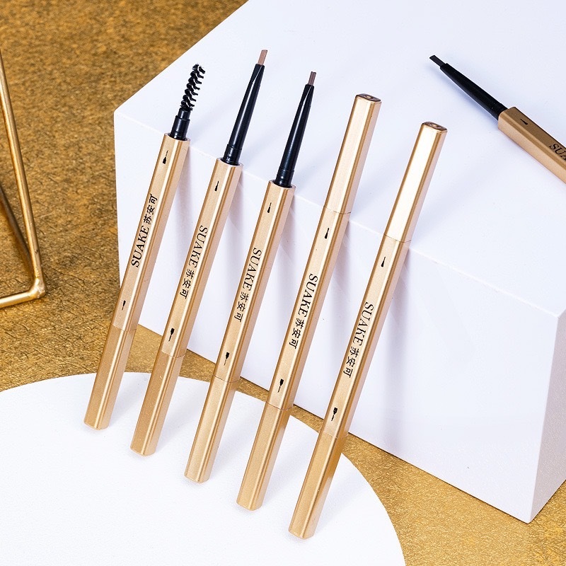 Suake 0072 ดินสอเขียนคิ้วแบบหมุน 2 in 1 สีดำ น้ำตาลอ่อนเทา เขียนง่าย เส้นคมชัด กันน้ำ กันเหงื่อ ติดทน Eyebrow Pencil