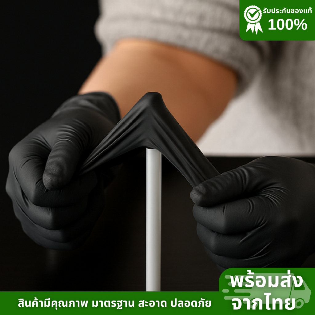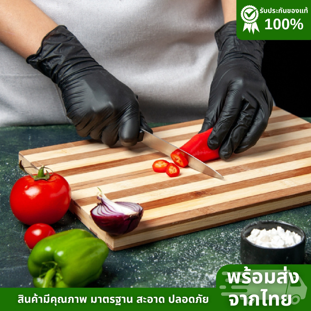 ถุงมือยางไนไตรสีดำ Brocare ชนิดไม่มีแป้ง ถุงมือทำอาหาร ถุงมืออาหาร ทนน้ำมัน พร้อมส่ง
