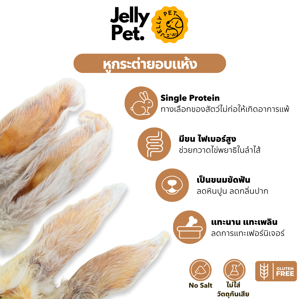 Jelly Pet Rabbit Ears หูกระต่ายอบแห้ง 1คู่ ขนมขัดฟัน ขนมสุนัขสุขภาพ ขนมหมาสุขภาพ ขนมแมวสุขภาพ