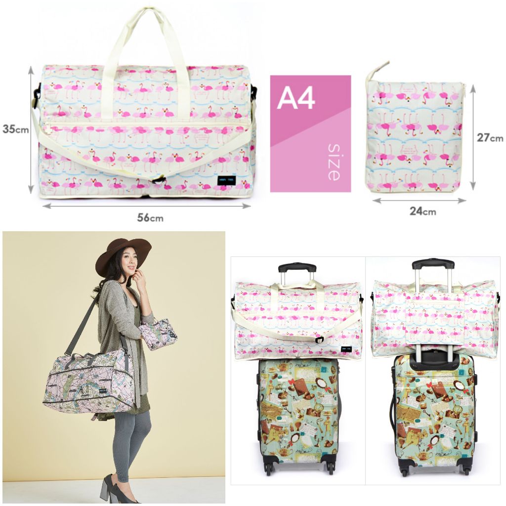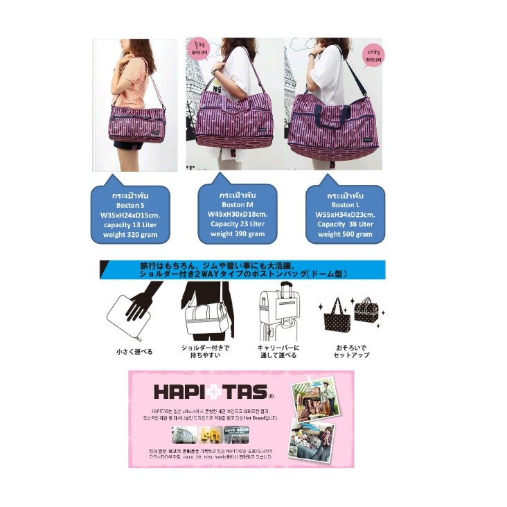HAPITAS กระเป๋าพับ กระเป๋าสะพาย Boston Large ลาย Modern Flower Pink