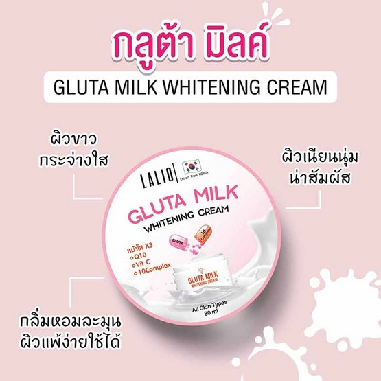 LALIO ครีมบำรุงผิวหน้า GLUTA MILK WHITENING CREAM 80 มล. 1 ชิ้น