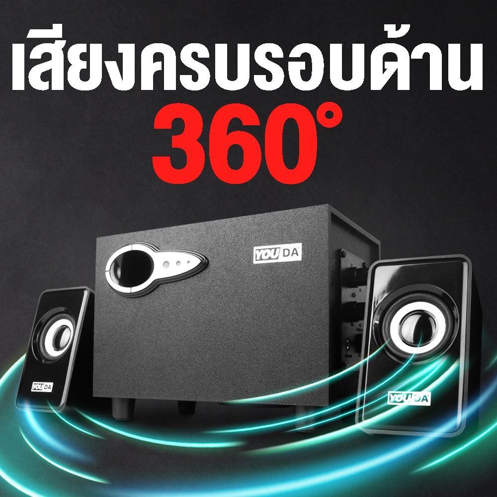 YOUDA ลำโพงคอมพิวเตอร์ 2.1 รับประกัน 1ปี พร้อมที่ปรับระดับเสียง ชุดลำโพง2.1 YD-221 ลำโพงคอม USB ลำโพงสเตอริโอแบบ 2.1