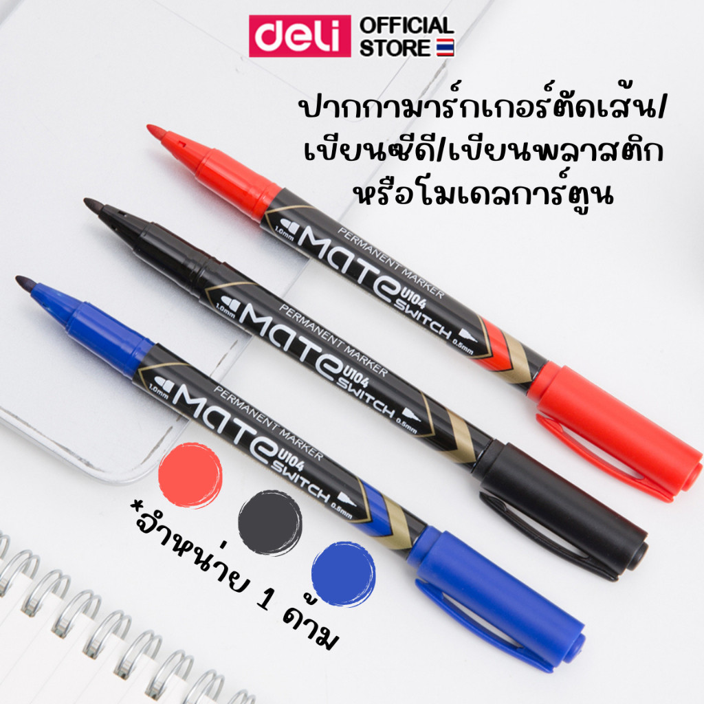 ปากกามาร์กเกอร์ Deli แบบ 2 หัว หมึกติดทน เขียนชัด ใช้งานอเนกประสงค์ Permanent Marker