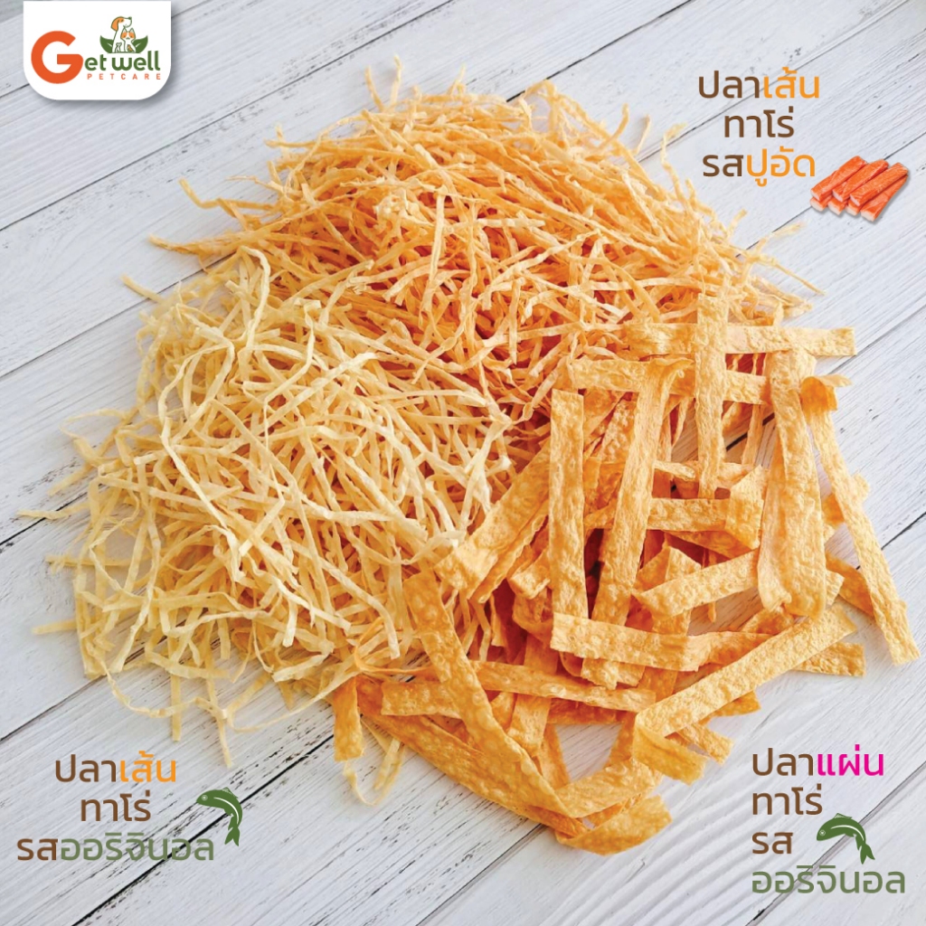 [30 g] [150 g] Get Well ปลาเส้น ปลาแผ่น ทาโร่ รสออริจินอล รสปูอัด ขนมหมาแมว ไม่ปรุงรส