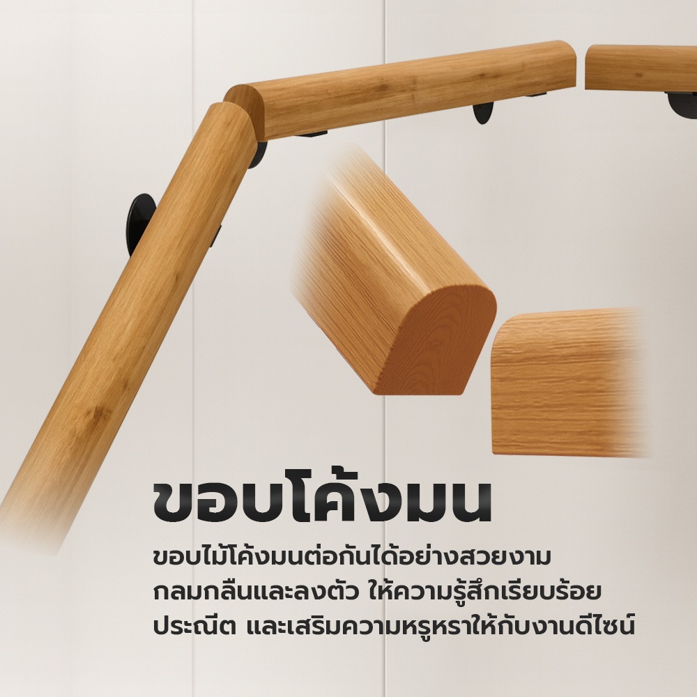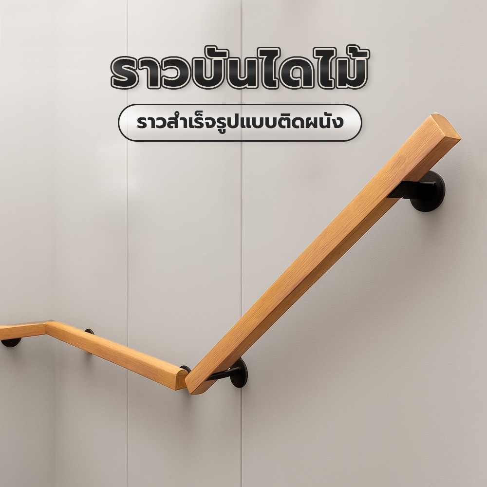 ราวบันไดไม้เนื้อแข็ง กันลื่น สำหรับผู้สูงอายุ ราวบันไดติดผนัง สไตล์ยุโรป