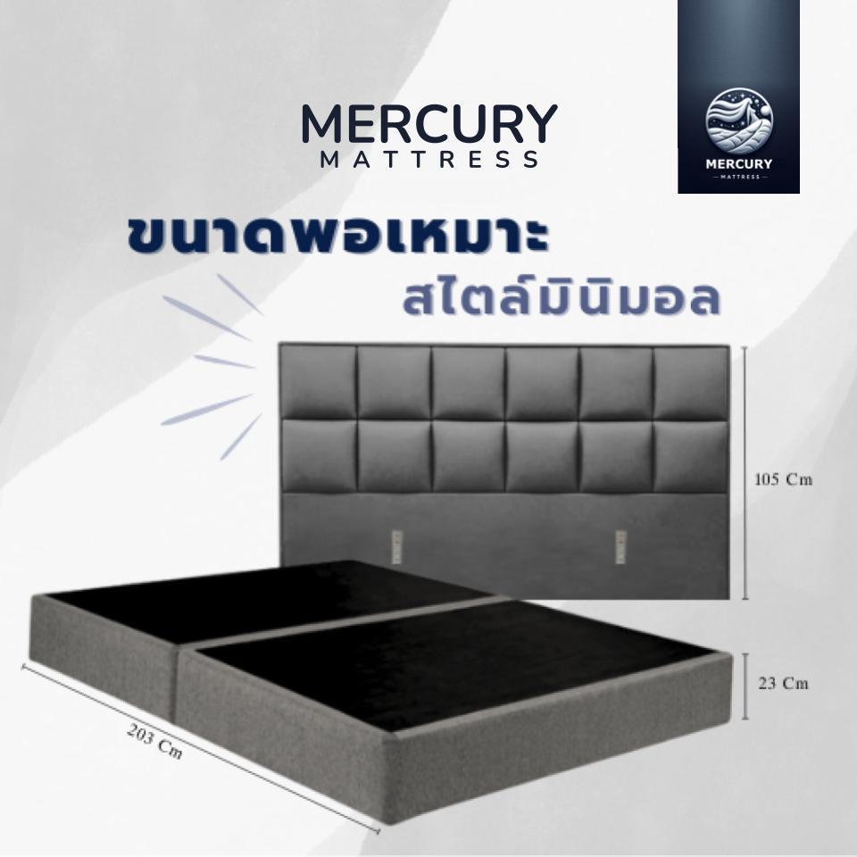 Mercury Mattress ฐานเตียงพร้อมหัวเตียง ลายตาราง (หุ้มผ้าเเคนวาส) โครงไม้เต็ง แข็งแรง หุ้มผ้าระบายอากาศ รองรับทุกสรีระ