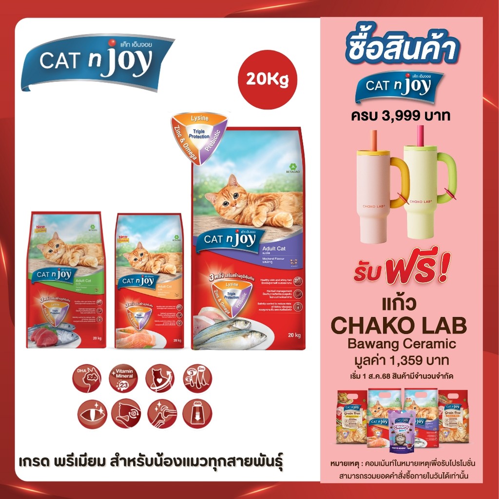 Cat n joy (20Kg) อาหารเม็ดแมวแคทเอ็นจอย แพ็คกระสอบ สุดคุ้ม