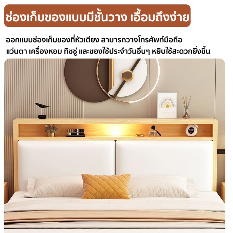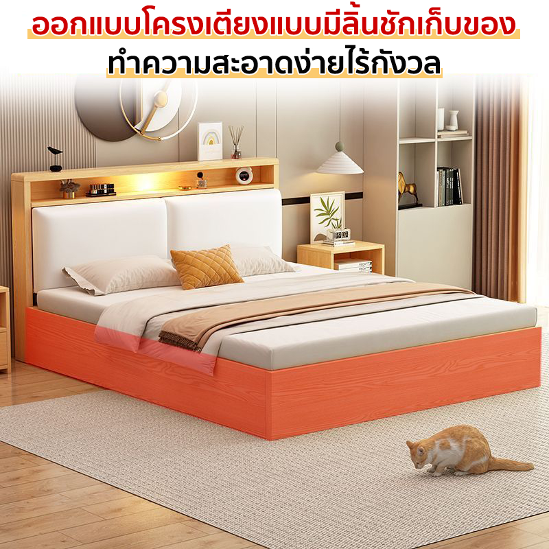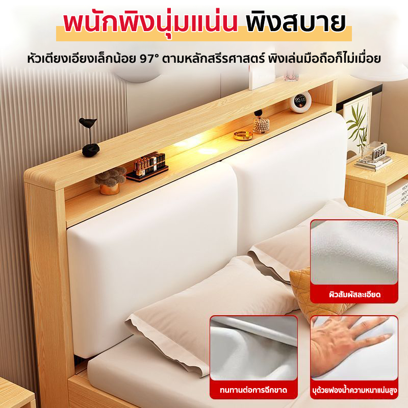 Hom heart เตียงนอน เตียงไม้ เตียงไม้เนื้อแข็ง 4ฟุต 5ฟุต 6ฟุตไม้คุณภาพดี พนักพิงนุ่มแน่น พิงสบาย 【อายุการใช้งาน 20 ปี】