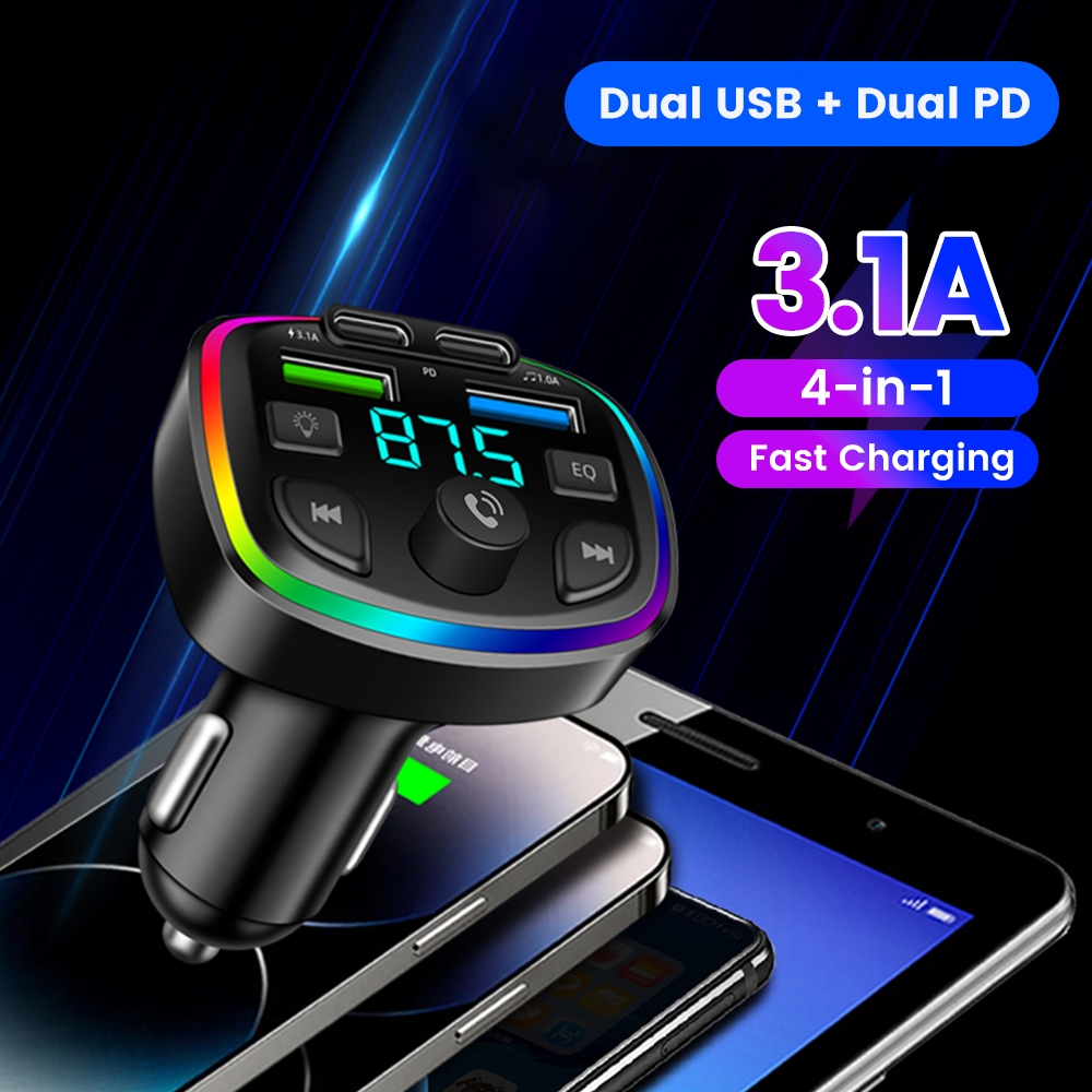 Twitch C9 Dual PD Dual USB Bluetooth FM Transmitter Wireless Car Charger MP3 Player วิทยุอะแดปเตอร์แฮนด์ฟรีในรถยนต์