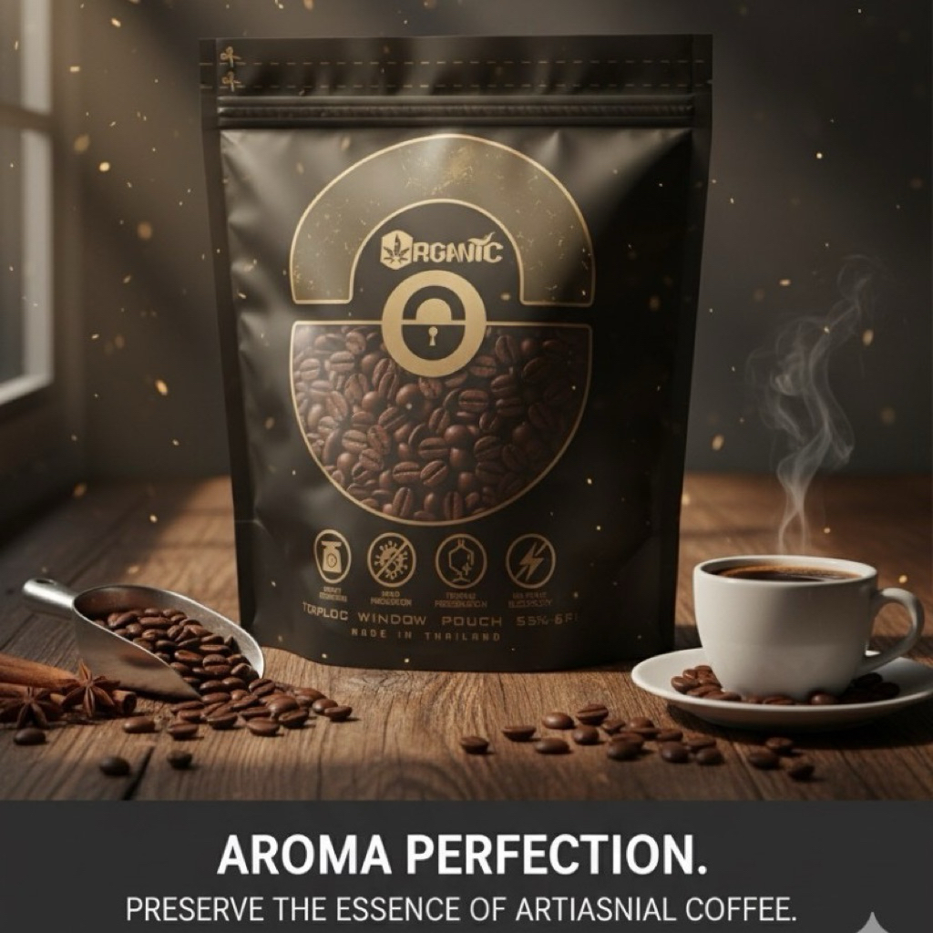 “Size S” ถุงซิปล็อคตั้งได้ ORGANIC สำหรับเก็บเมล็ดกาแฟ อาหาร ขนม ยาและสมุนไพร ถุงซีลคุณภาพสูง