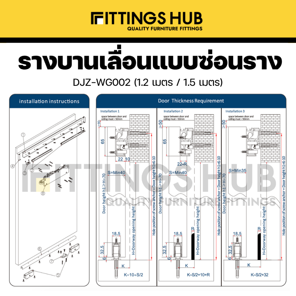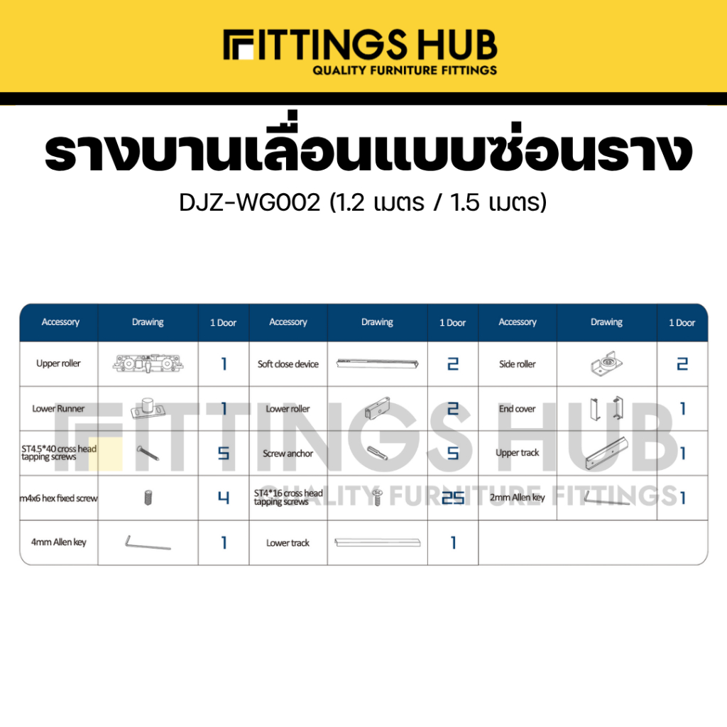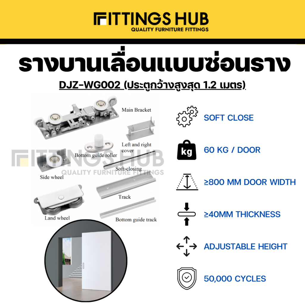 อะไหล่บานเลื่อนแบบซ่อนราง 80 กิโล บานไม้ (DJZ-WG002-W) - FittingsHub
