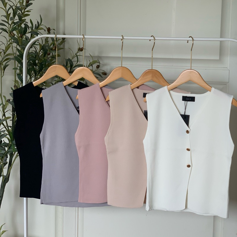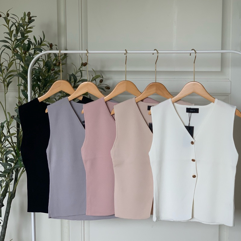 [ป้าย One-K] สินค้าใหม่ เสื้อไหมพรมแขนกุด กระดุมทอง ทรงสวยใส่แมทซ์ได้หลายแบบค่ะ