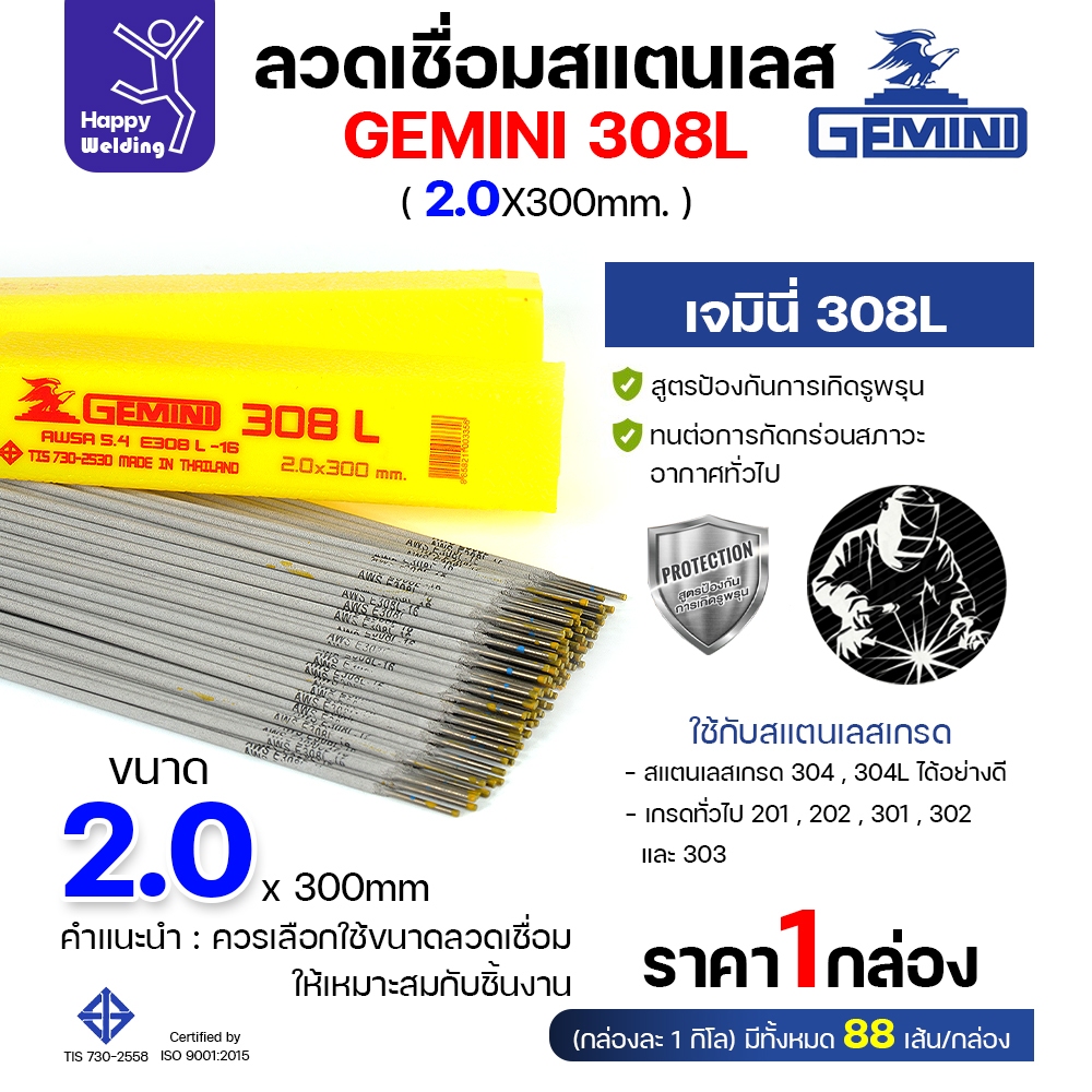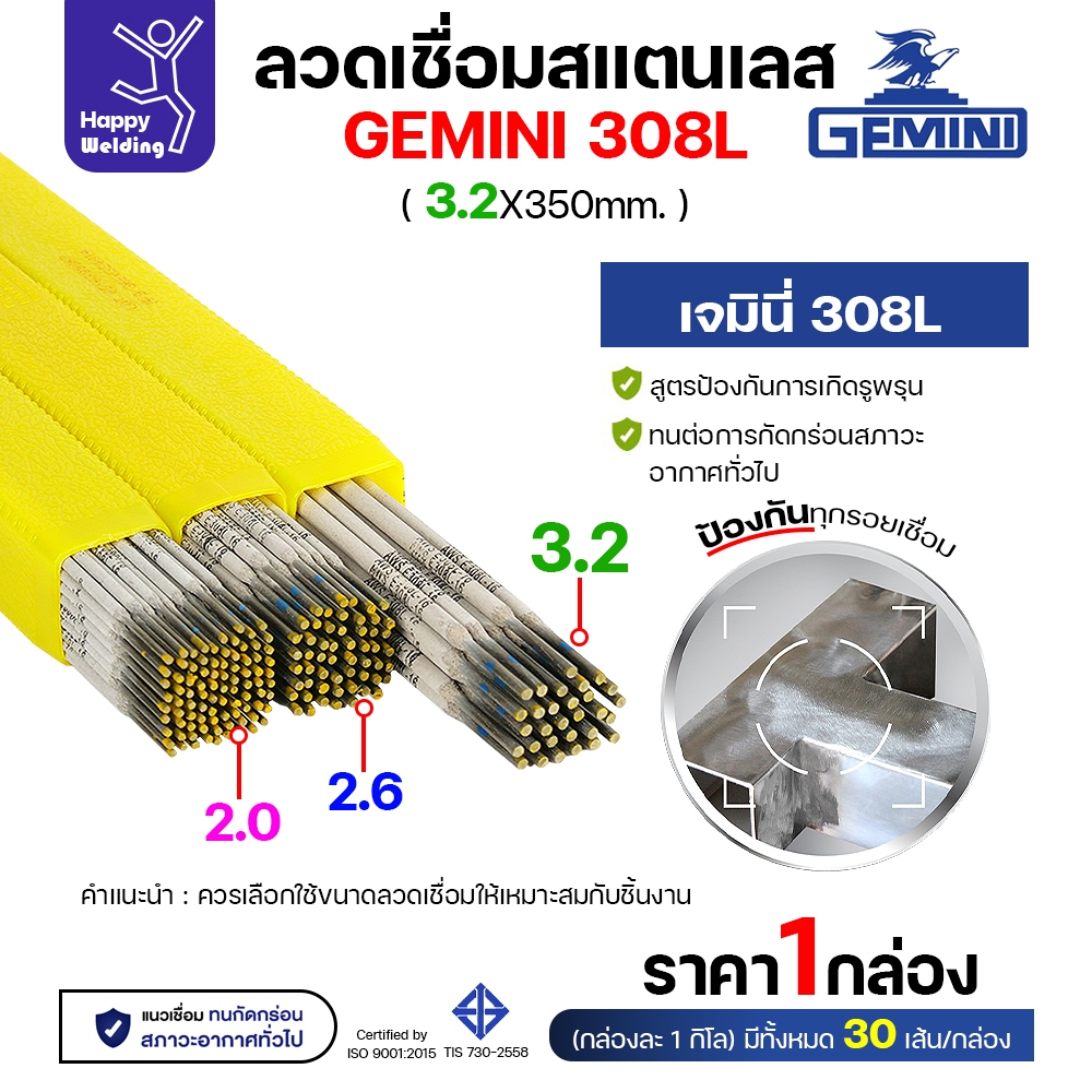 พร้อมส่ง!! Gemini ลวดเชื่อมไฟฟ้า สแตนเลส เกรด 308L 2.0/2.6/3.2 มีของเลย พร้อมส่ง 1กล่อง1โล