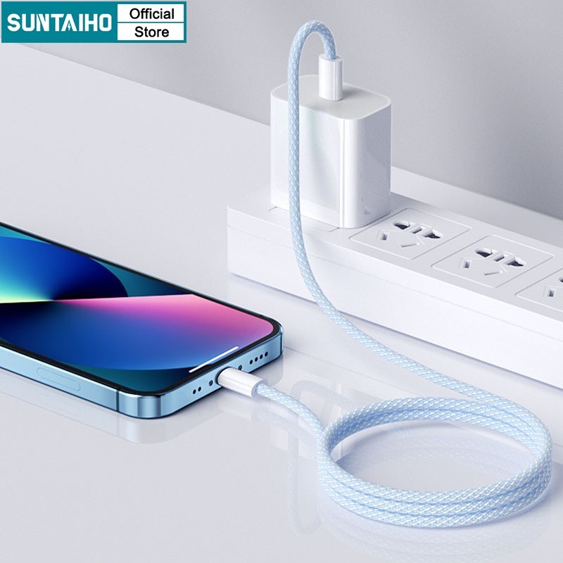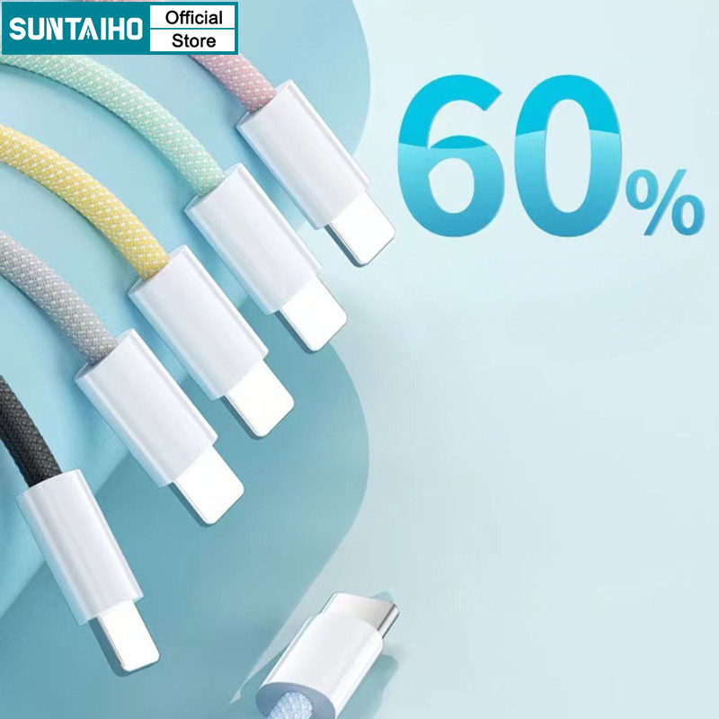 Suntaiho สาย USB เป็น IP การส่งข้อมูลอย่างรวดเร็ว สายชาร์จ ด้ายทอสีขาวสําหรับ iPhone iPad