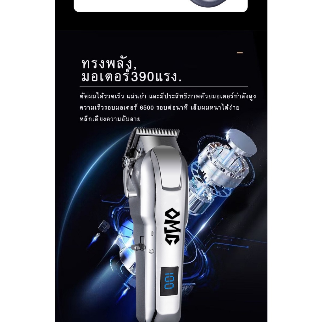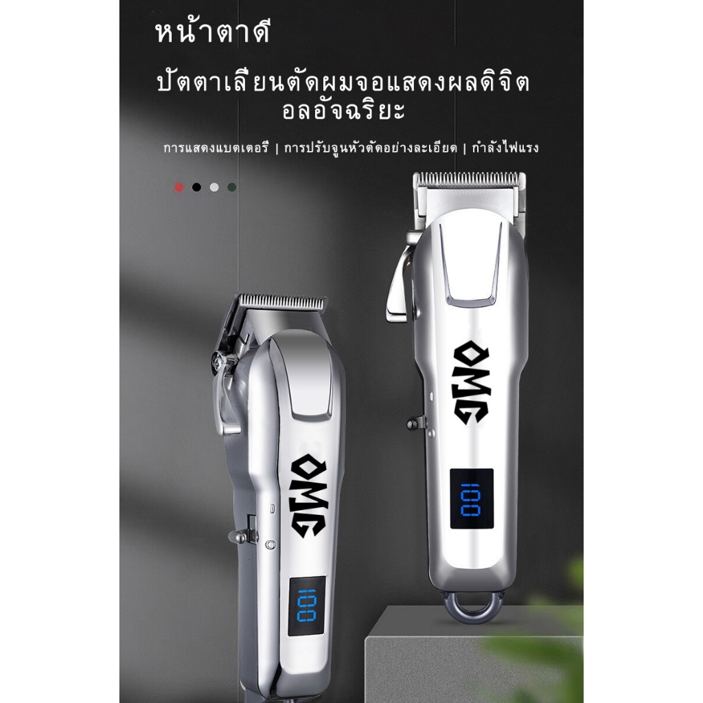 เครื่องตัดผมไร้สาย แบตเตอรี่ความจุสูง LCD แสดงระดับพลังงาน ที่เหลือ ตัดหัวทรงกลมออกแบบให้ไม่ทำร้ายหนังศีรษะ OMG Trimmer
