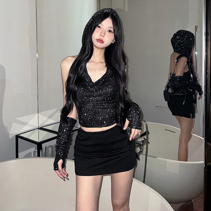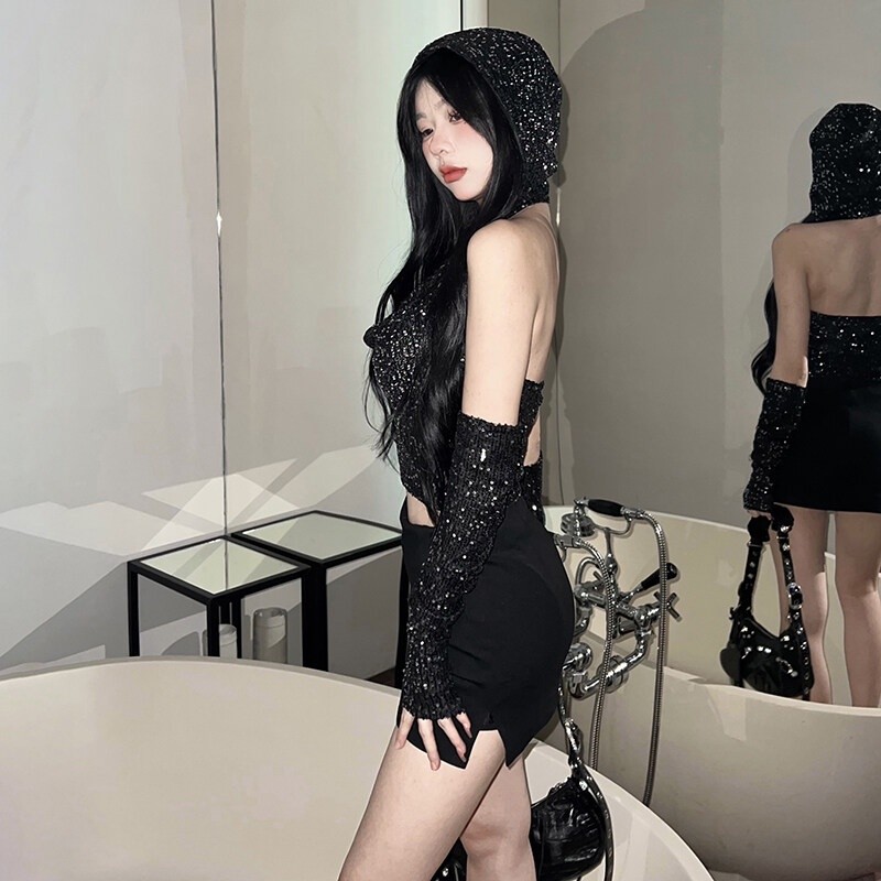 Kliou แฟชั่น Mature ผู้หญิงเลื่อม Shining ออกแบบเซ็กซี่ Backless Hooded Tops เสื้อกั๊กแขน Slim Fit Casual