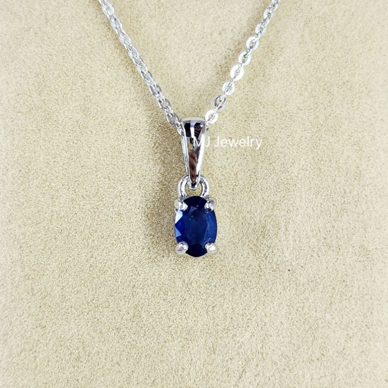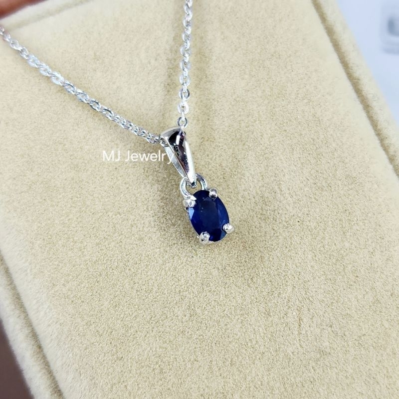 จี้พลอยไพลิน พลอยแท้ ขนาด 6×4 มิล เงินแท้ 925 จัดส่งพร้อมใบรับประกัน
