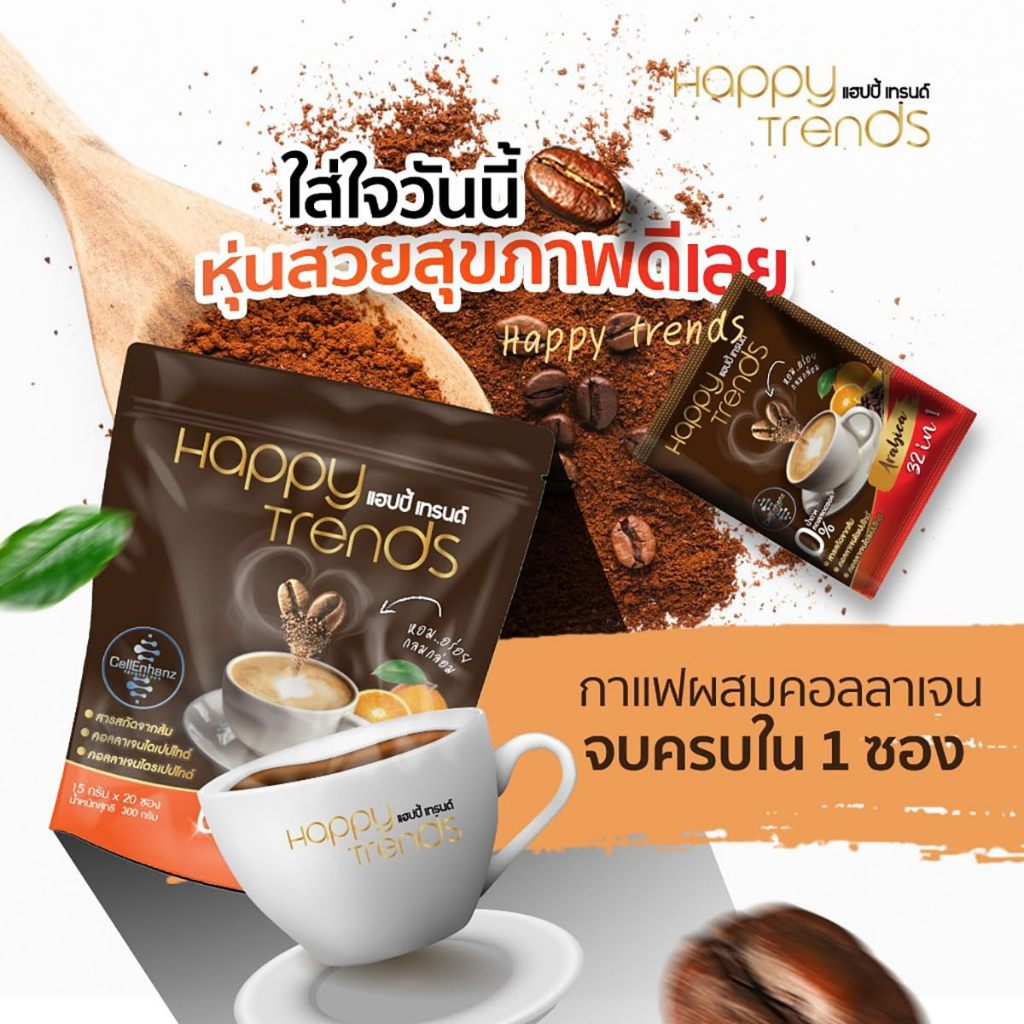 1 ถุง (มี 20 ซอง) แฮปปี้ เทรนด์ กาแฟปรุงสำเร็จ ผสมคอลลาเจน 32in1 Happy Trends Coffee