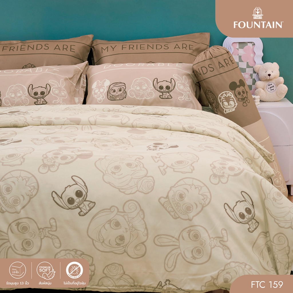 Fountain FTC159 การ์ตูน Doorables ลิขสิทธิ์แท้ Disney สัมผัสนุ่มลื่น ชุดเครื่องนอนฟาวน์เทน ผ้าปูที่นอน ผ้านวม