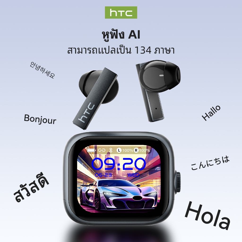 HTC NE40 หูฟังแปลภาษา AI หูฟังบลูทูธ Bluetooth 6.0 แปลได้ 134 ภาษา หูฟังแปลภาษา หูฟัง AI แปลภาษาสด หน้าจอ LED อัจฉริยะ หูฟัง เกี่ยว หู ไร้สาย คุณภาพเสียง HiFi เทคโนโลยีตัดเสียงรบกวน ASMR