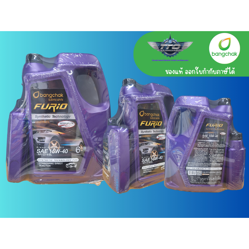 น้ำมันเครื่อง furio 15w40 กึ่งสังเคราะห์ 10,000 กิโล สำหรับเครื่องยนต์ดีเซล ขนาด 6+1 ลิตร